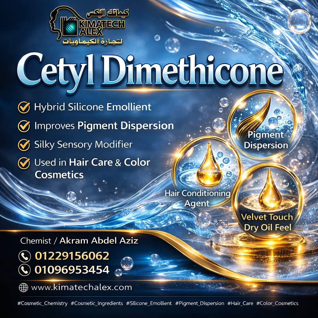 Cetyl Dimethicone يُستخدم لتحسين texture وspreadability وإعطاء لمسة velvety؛ لذلك يناسب جدًا الكريمات المرطبة بشرط إدخاله في oil phase.