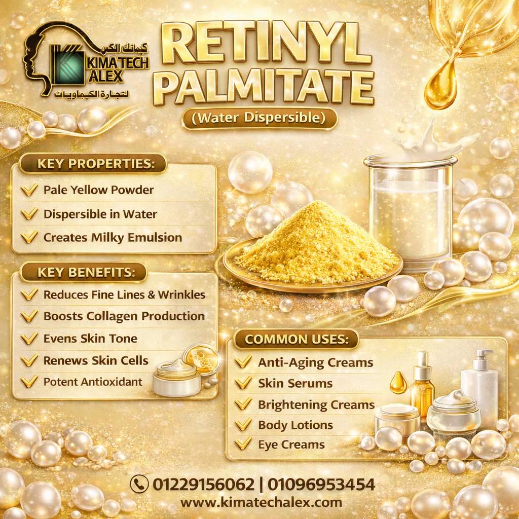 يُعد Retinyl Palmitate أحد أشهر مشتقات فيتامين A المستخدمة في منتجات العناية بالبشرة، حيث يتميز بقدرته على تحسين مظهر الجلد وتعزيز تجديد الخلايا.
